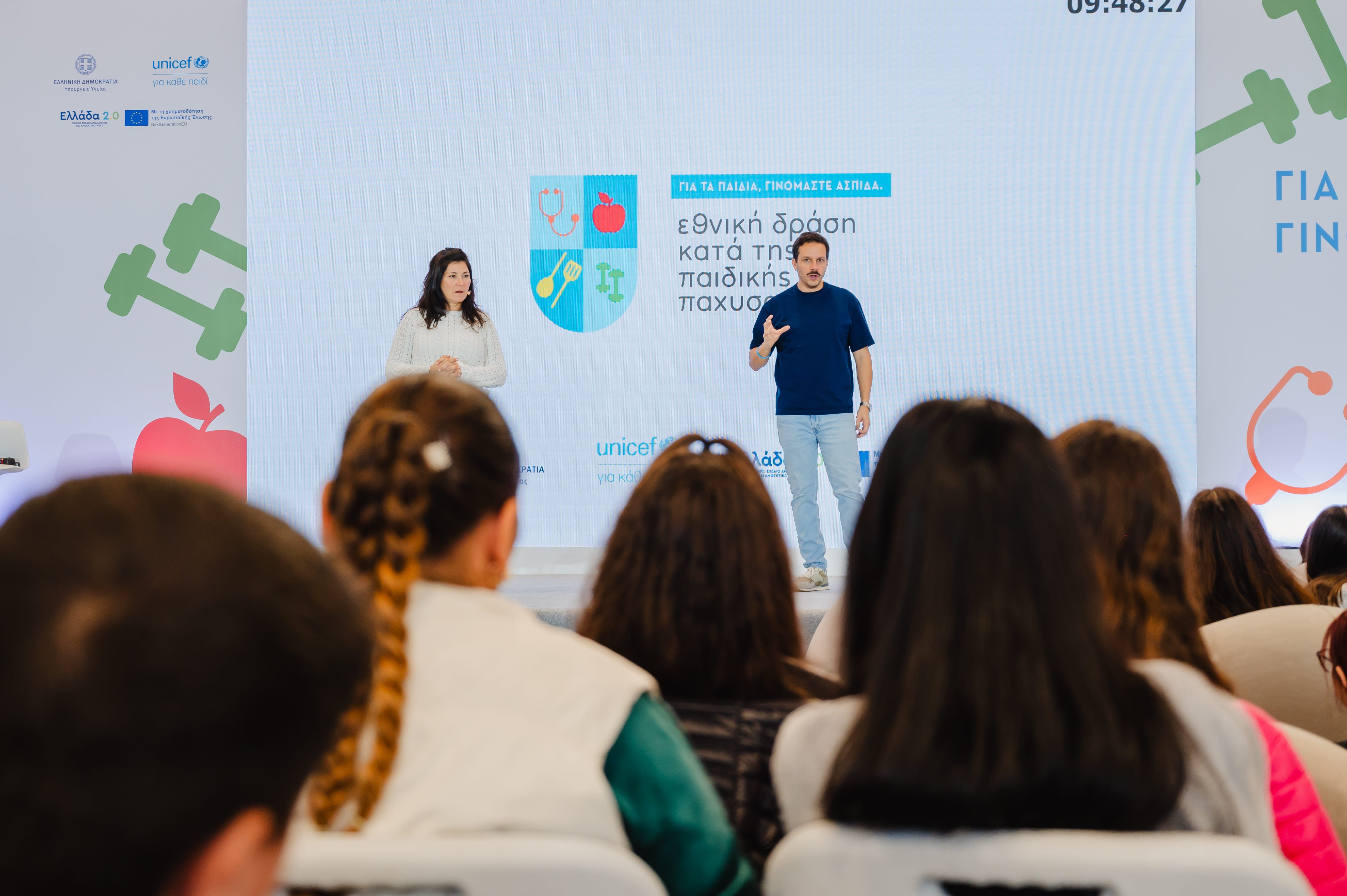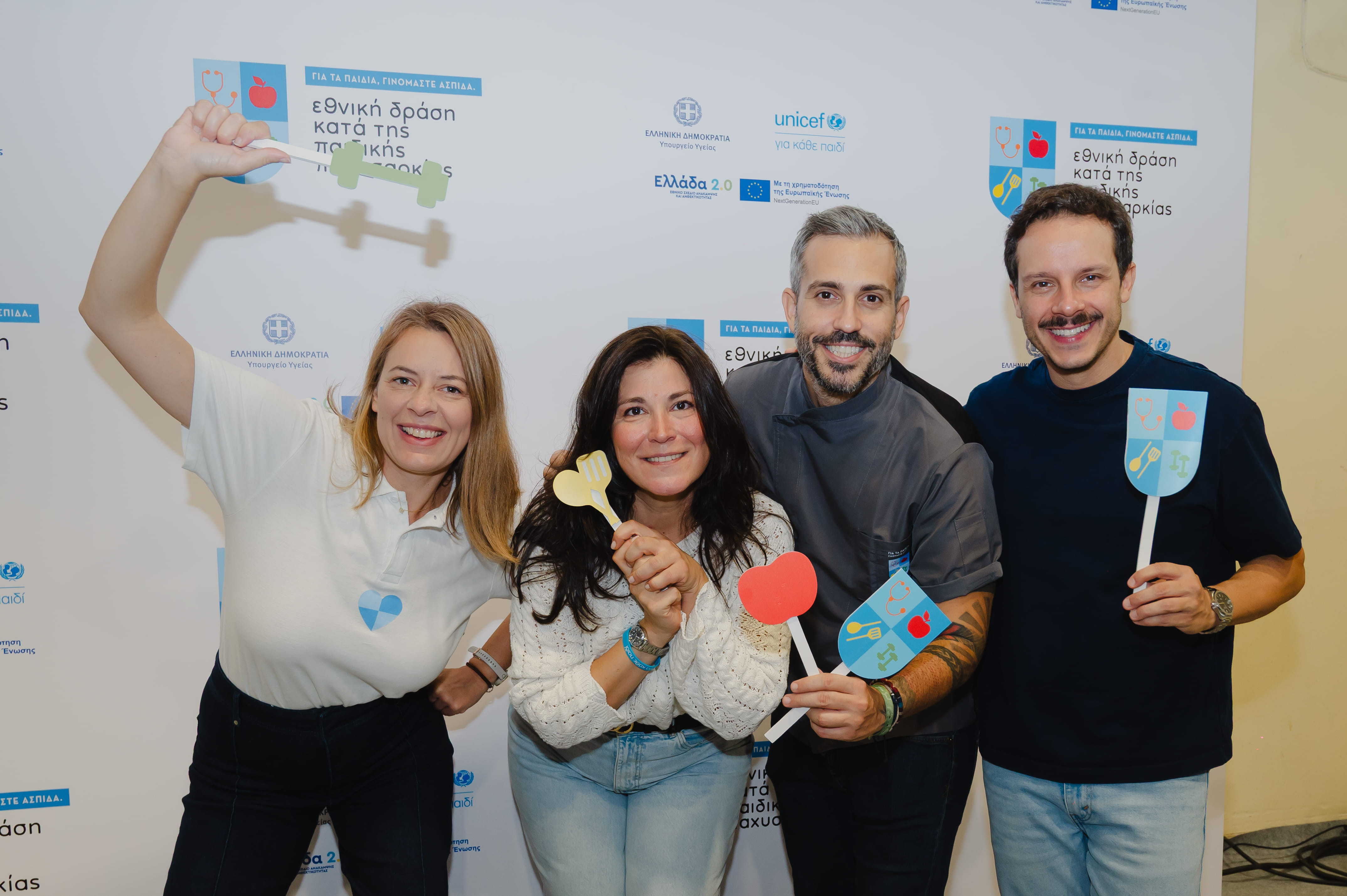 Τους μαθητές υποδέχτηκαν ο Δημήτρης Μακαλιάς και η Ελευθερία Μπενοβία, παρουσιάζοντας την Εθνική Δράση κατά της Παιδικής Παχυσαρκίας, ενώ ο σεφ Γιώργος Τσούλης ετοίμασε μαζί με τα παιδιά γευστικές και υγιεινές συνταγές. Παράλληλα, η διαιτολόγος- διατροφολόγος Φανή Πρεβέντη μοιράστηκε έξυπνες συμβουλές για μια πιο ισορροπημένη διατροφή.