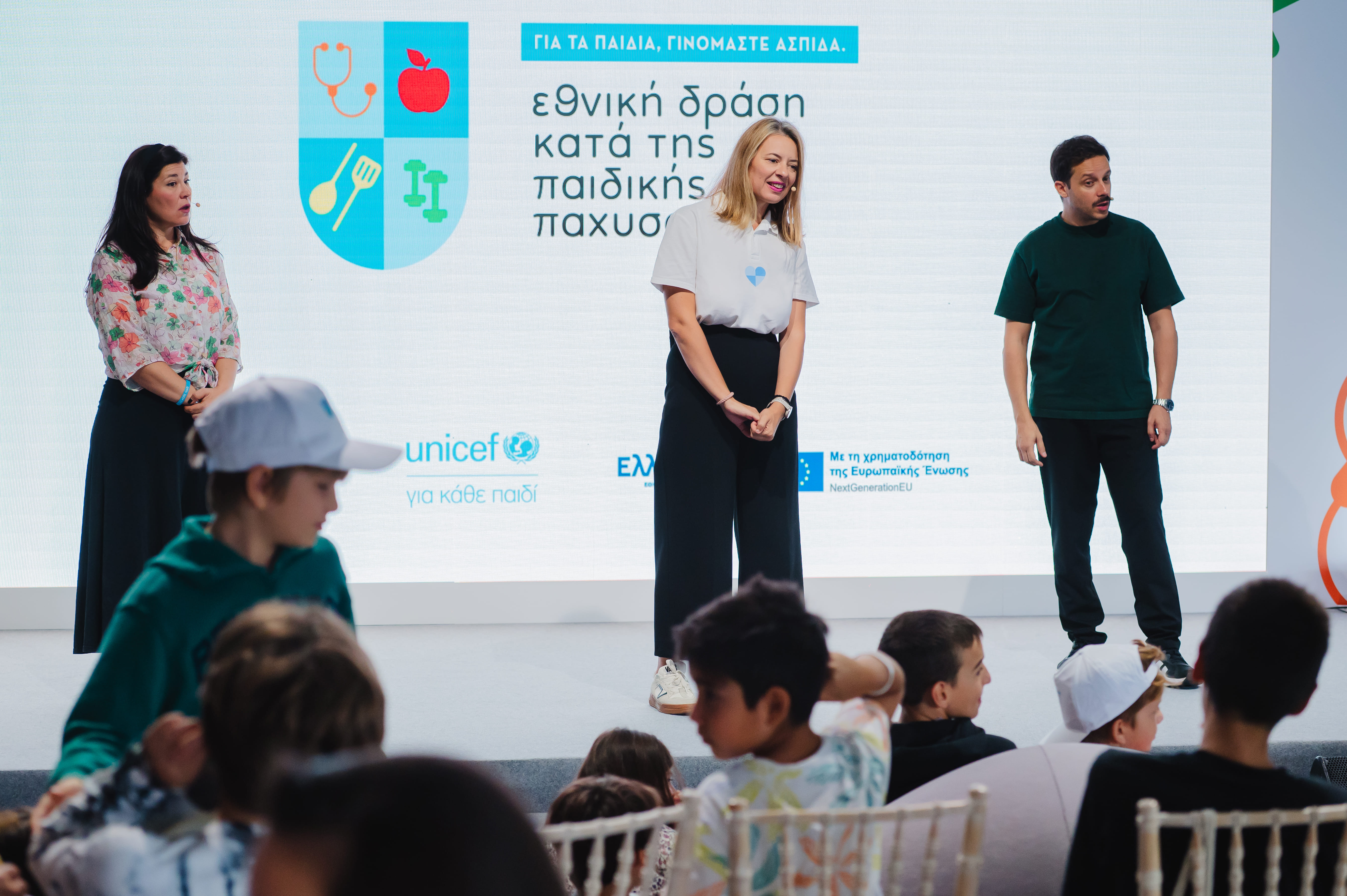 Τους μαθητές υποδέχτηκαν ο Δημήτρης Μακαλιάς και η Ελευθερία Μπενοβία, παρουσιάζοντας την Εθνική Δράση κατά της Παιδικής Παχυσαρκίας, ενώ ο σεφ Γιώργος Τσούλης ετοίμασε μαζί με τα παιδιά γευστικές και υγιεινές συνταγές. Παράλληλα, η διαιτολόγος- διατροφολόγος Φανή Πρεβέντη μοιράστηκε έξυπνες συμβουλές για μια πιο ισορροπημένη διατροφή.