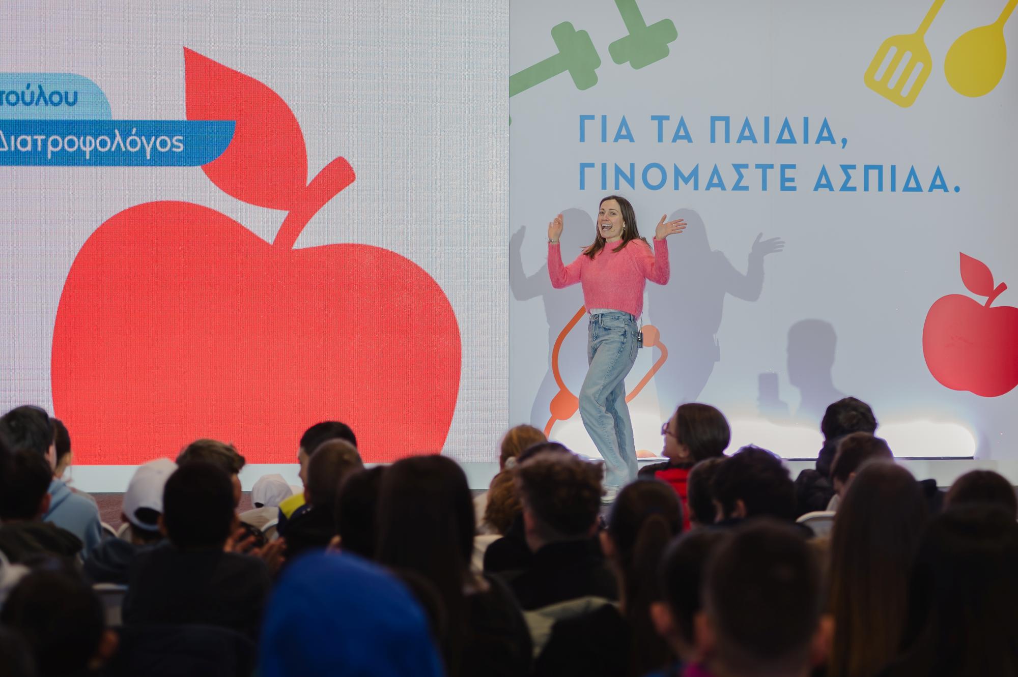 Τους μαθητές υποδέχτηκε ο Λευτέρης Ελευθερίου παρουσιάζοντας την Εθνική Δράση κατά της Παιδικής Παχυσαρκίας, ενώ σεφ Τάσος Αντωνίου ετοίμασε μαζί με τα παιδιά γευστικές και υγιεινές συνταγές. Παράλληλα, η διαιτολόγος- διατροφολόγος Άννα Κοκκινοπούλου μοιράστηκε έξυπνες συμβουλές για μια πιο ισορροπημένη διατροφή.