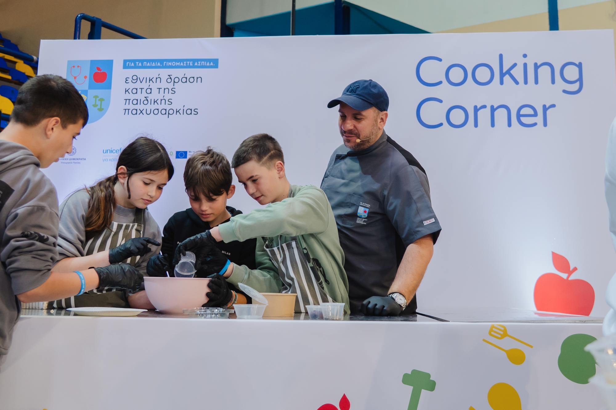 Τους μαθητές υποδέχτηκε ο Λευτέρης Ελευθερίου παρουσιάζοντας την Εθνική Δράση κατά της Παιδικής Παχυσαρκίας, ενώ σεφ Τάσος Αντωνίου ετοίμασε μαζί με τα παιδιά γευστικές και υγιεινές συνταγές. Παράλληλα, η διαιτολόγος- διατροφολόγος Άννα Κοκκινοπούλου μοιράστηκε έξυπνες συμβουλές για μια πιο ισορροπημένη διατροφή.