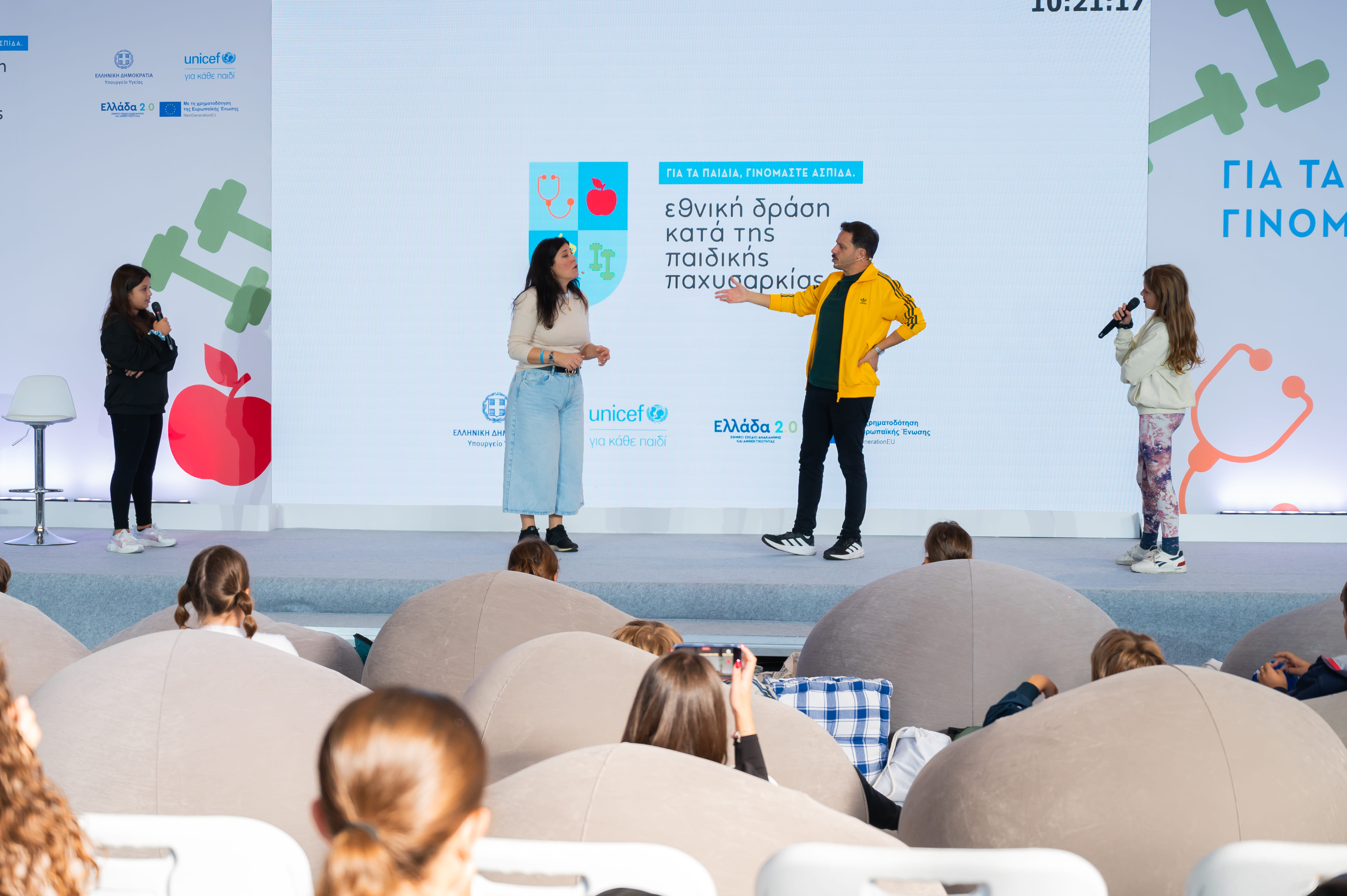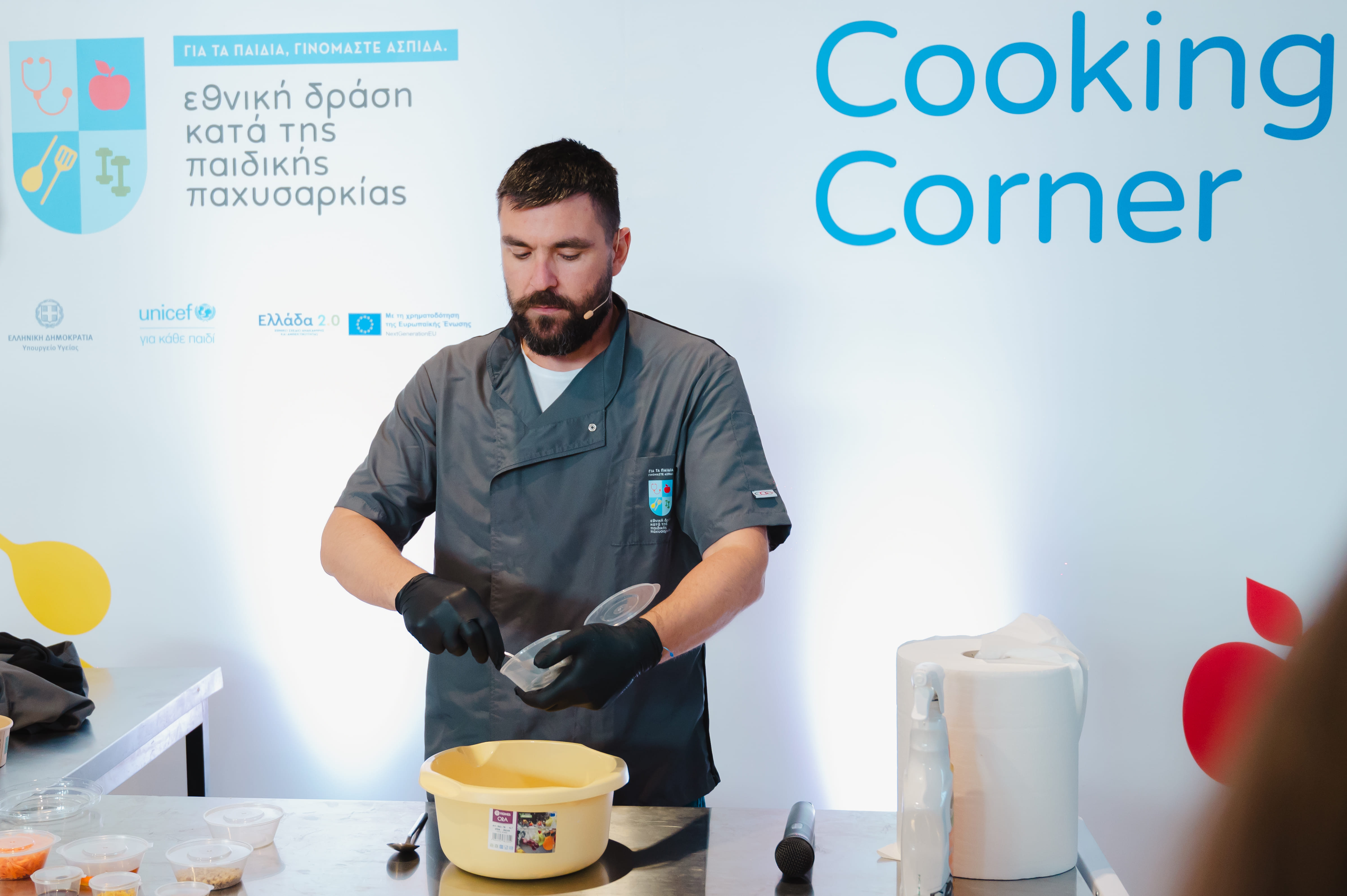 Τους μαθητές υποδέχτηκαν ο Δημήτρης Μακαλιάς και η Ελευθερία Μπενοβία, παρουσιάζοντας την Εθνική Δράση κατά της Παιδικής Παχυσαρκίας, ενώ ο σεφ Γαβριήλ Νικολαΐδης ετοίμασε μαζί με τα παιδιά γευστικές και υγιεινές συνταγές. Παράλληλα, η διαιτολόγος- διατροφολόγος Φανή Πρεβέντη μοιράστηκε έξυπνες συμβουλές για μια πιο ισορροπημένη διατροφή.