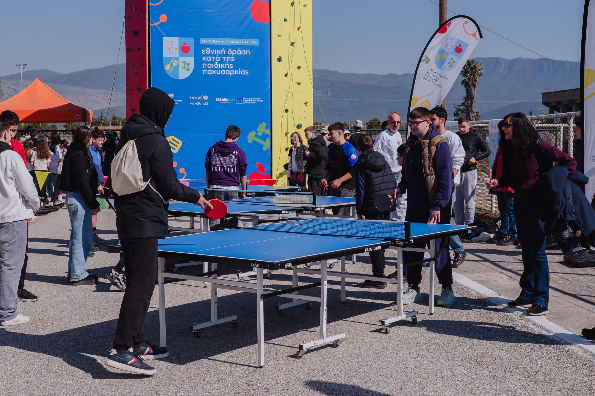 Τα παιδιά είχαν την ευκαιρία να συμμετάσχουν σε αθλητικές δραστηριότητες, όπως μπάσκετ, πινγκ-πονγκ, τοίχο αναρρίχησης και πίστα εμποδίων, καθώς και σε δημιουργικές δραστηριότητες όπως χορός και μάθημα σκιτσογραφίας (doodling).