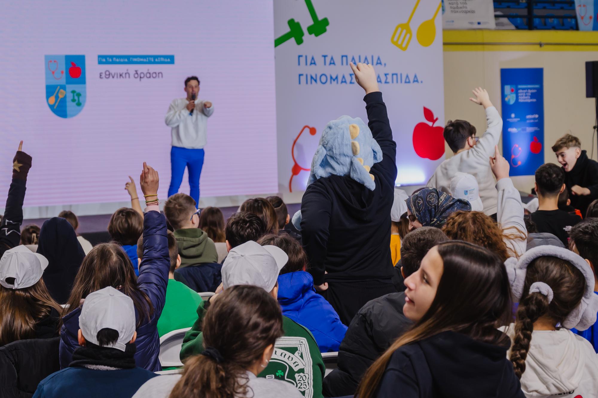 Τους μαθητές υποδέχτηκε ο Λευτέρης Ελευθερίου παρουσιάζοντας την Εθνική Δράση κατά της Παιδικής Παχυσαρκίας, ενώ σεφ Τάσος Αντωνίου ετοίμασε μαζί με τα παιδιά γευστικές και υγιεινές συνταγές. Παράλληλα, η διαιτολόγος- διατροφολόγος Άννα Κοκκινοπούλου μοιράστηκε έξυπνες συμβουλές για μια πιο ισορροπημένη διατροφή.