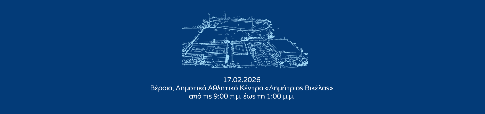 Τρίτη, 17 Φεβρουαρίου 2026 • Δημοτικό Αθλητικό Κέντρο «Δημήτριος Βικέλας» • από τις 9:00 π.μ. έως τη 1:00 μ.μ.