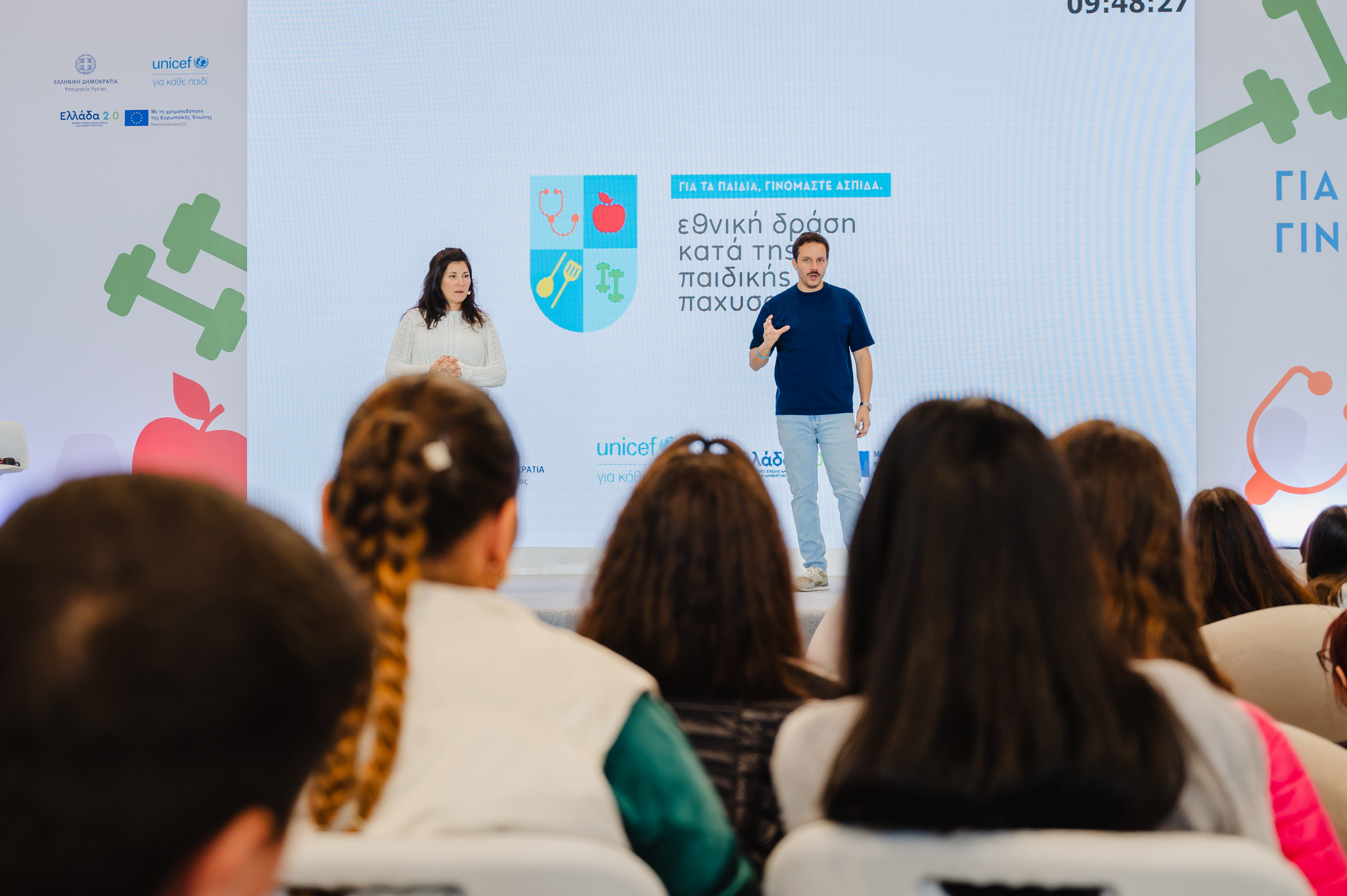 Τους μαθητές υποδέχτηκαν ο Δημήτρης Μακαλιάς και η Ελευθερία Μπενοβία, παρουσιάζοντας την Εθνική Δράση κατά της Παιδικής Παχυσαρκίας, ενώ ο σεφ Γιώργος Τσούλης ετοίμασε μαζί με τα παιδιά γευστικές και υγιεινές συνταγές. Παράλληλα, η διαιτολόγος- διατροφολόγος Φανή Πρεβέντη μοιράστηκε έξυπνες συμβουλές για μια πιο ισορροπημένη διατροφή.