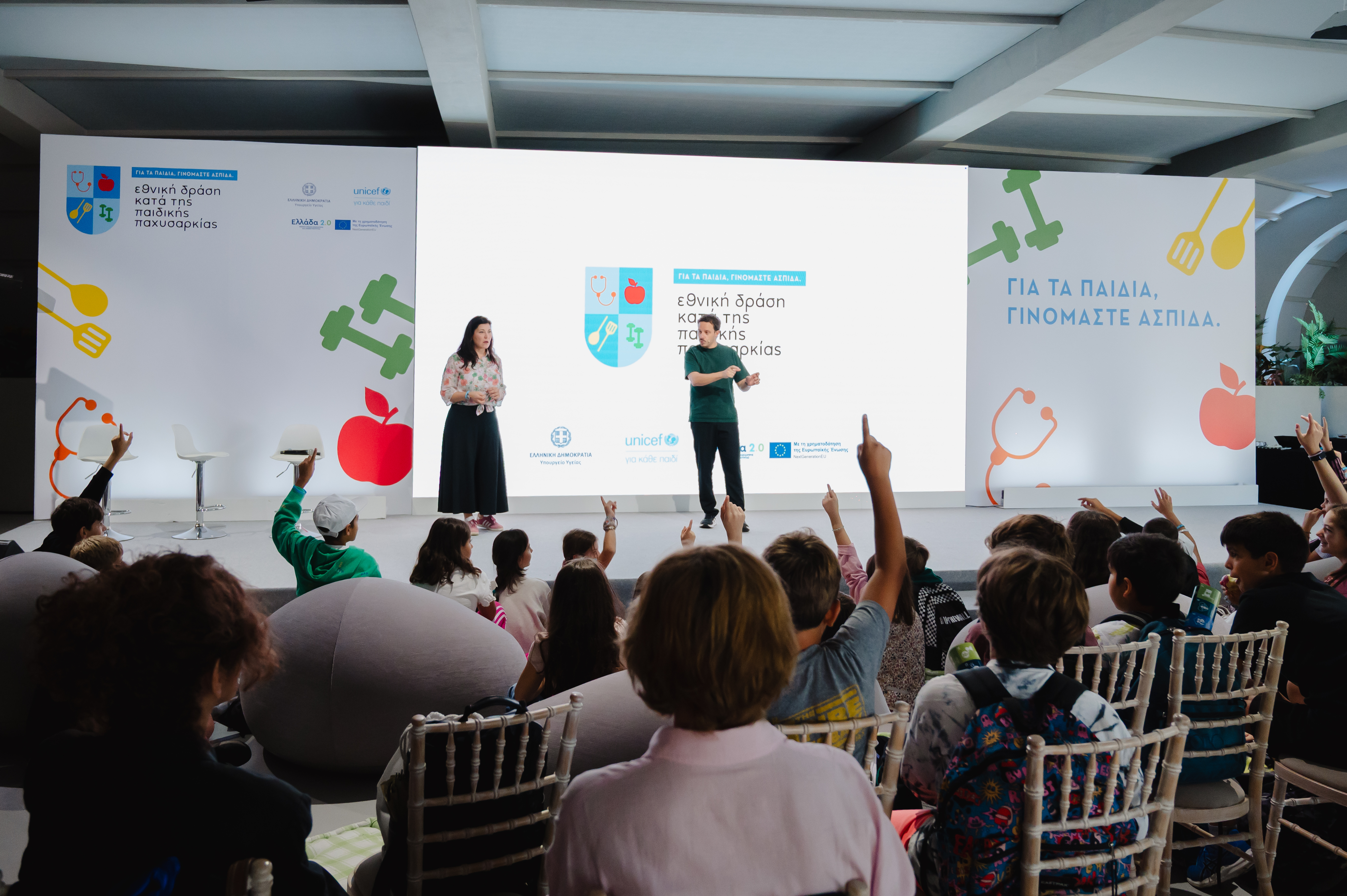 Τους μαθητές υποδέχτηκαν ο Δημήτρης Μακαλιάς και η Ελευθερία Μπενοβία, παρουσιάζοντας την Εθνική Δράση κατά της Παιδικής Παχυσαρκίας, ενώ ο σεφ Γιώργος Τσούλης ετοίμασε μαζί με τα παιδιά γευστικές και υγιεινές συνταγές. Παράλληλα, η διαιτολόγος- διατροφολόγος Φανή Πρεβέντη μοιράστηκε έξυπνες συμβουλές για μια πιο ισορροπημένη διατροφή.