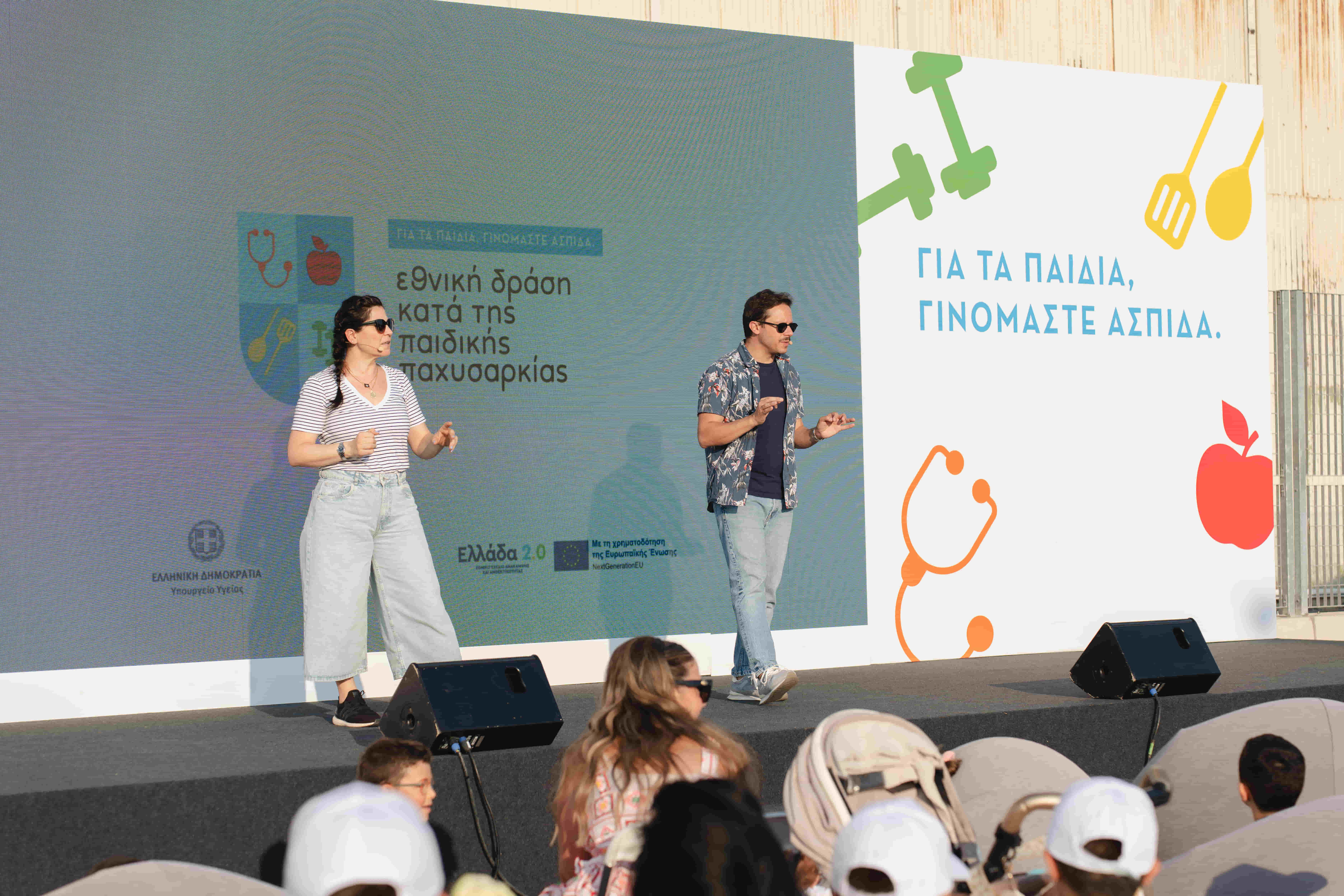 Στη συνέχεια, ο Δημήτρης Μακαλιάς και η Ελευθερία Μπενοβία υποδέχτηκαν τους παρευρισκόμενους και παρουσίασαν την Εθνική Δράση κατά της Παιδικής Παχυσαρκίας, ενώ ο σεφ Γιώργος Τσούλης ετοίμασε μαζί με τα παιδιά γευστικές και υγιεινές συνταγές. Παράλληλα, η διαιτολόγος- διατροφολόγος Φανή Πρεβέντη μοιράστηκε έξυπνες συμβουλές για μια πιο ισορροπημένη διατροφή.