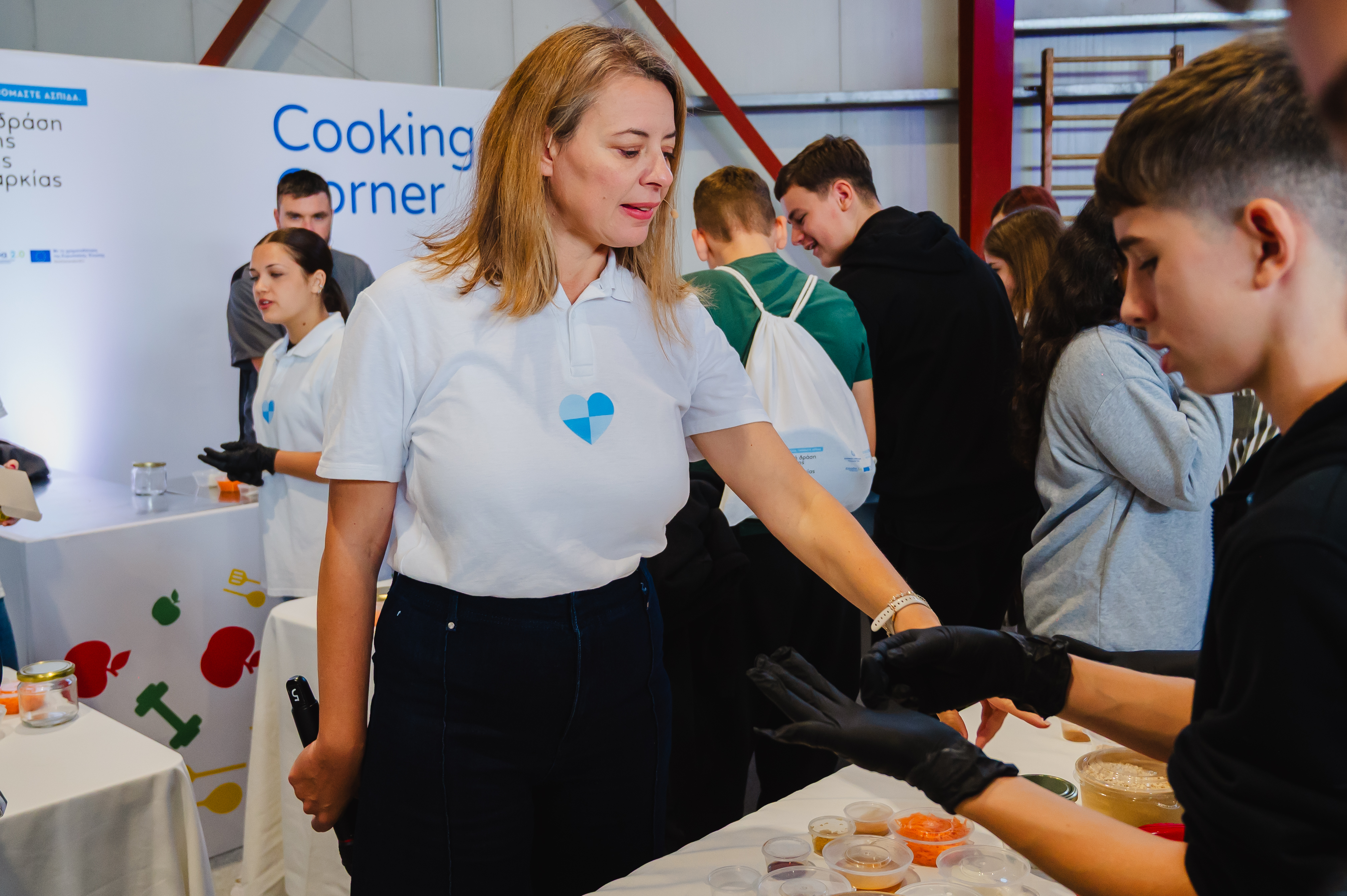 Τους μαθητές υποδέχτηκαν ο Δημήτρης Μακαλιάς και η Ελευθερία Μπενοβία, παρουσιάζοντας την Εθνική Δράση κατά της Παιδικής Παχυσαρκίας, ενώ ο σεφ Γαβριήλ Νικολαΐδης ετοίμασε μαζί με τα παιδιά γευστικές και υγιεινές συνταγές. Παράλληλα, η διαιτολόγος- διατροφολόγος Φανή Πρεβέντη μοιράστηκε έξυπνες συμβουλές για μια πιο ισορροπημένη διατροφή.