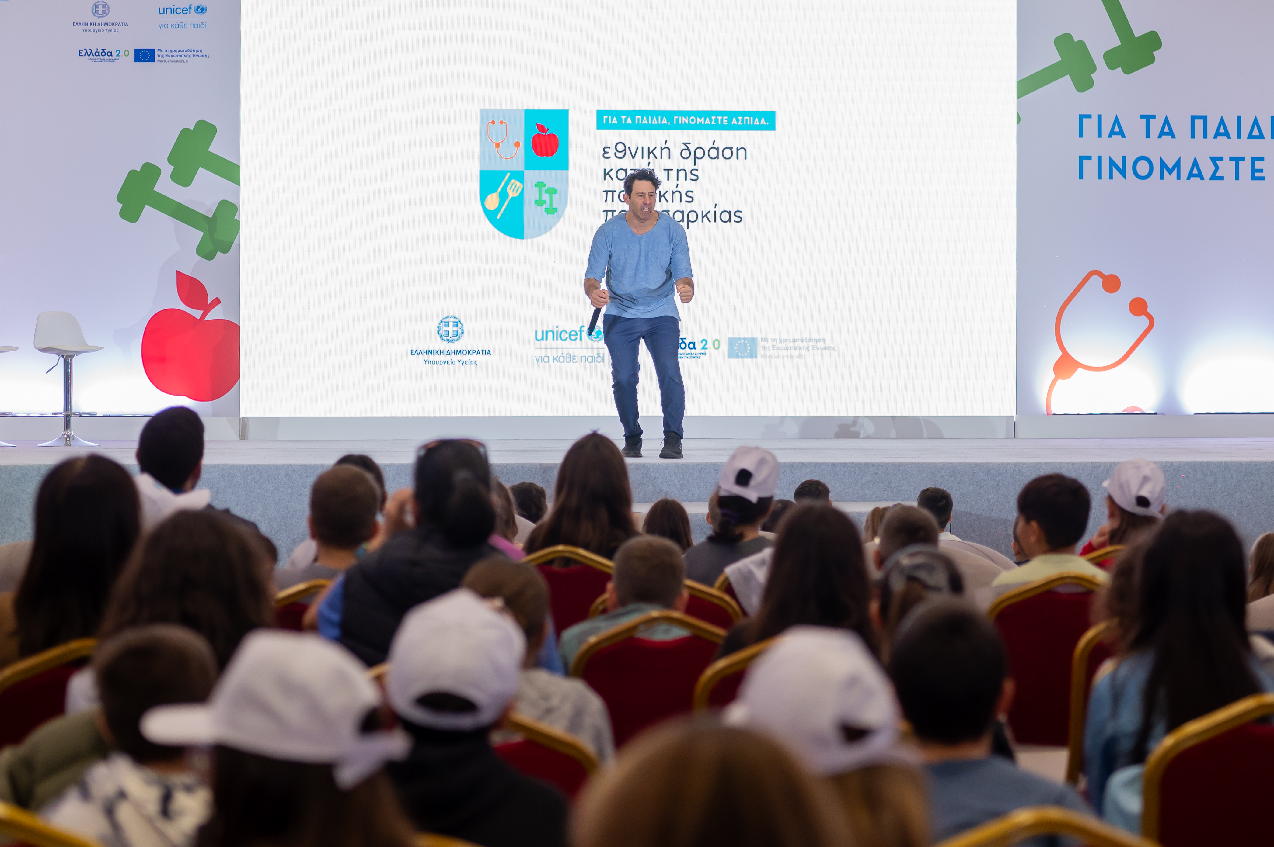Τους μαθητές υποδέχτηκαν ο Λευτέρης Ελευθερίου παρουσιάζοντας την Εθνική Δράση κατά της Παιδικής Παχυσαρκίας, ενώ ο σεφ Τάσος Αντωνίου ετοίμασε μαζί με τα παιδιά γευστικές και υγιεινές συνταγές.